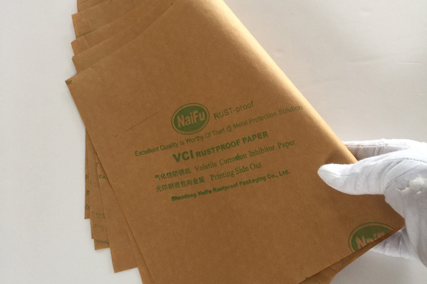 4、包裝過程---將含有緩蝕劑的面朝向金屬包裝,不覆膜防銹紙可作為金屬產(chǎn)品間墊層隔材使用,以免其他材質(zhì)阻隔材料含S、CL化學(xué)成分,影響防銹效果